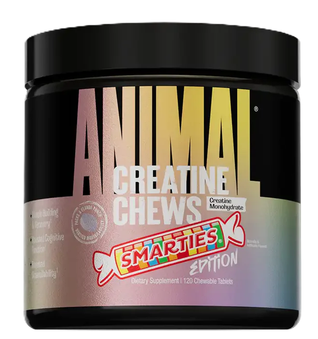 nimal Creatine Chews gives you the power of creatine monohydrate in delicious chewable tablets. Each serving contains 5g of creatine monohydrate and sea salt for absorption and pumps. With three flavors to choose from, Animal Creatine Chews is the convenient way to build muscle, enhance endurance, support muscle recovery, and build strength. No water, shakers, no mess.