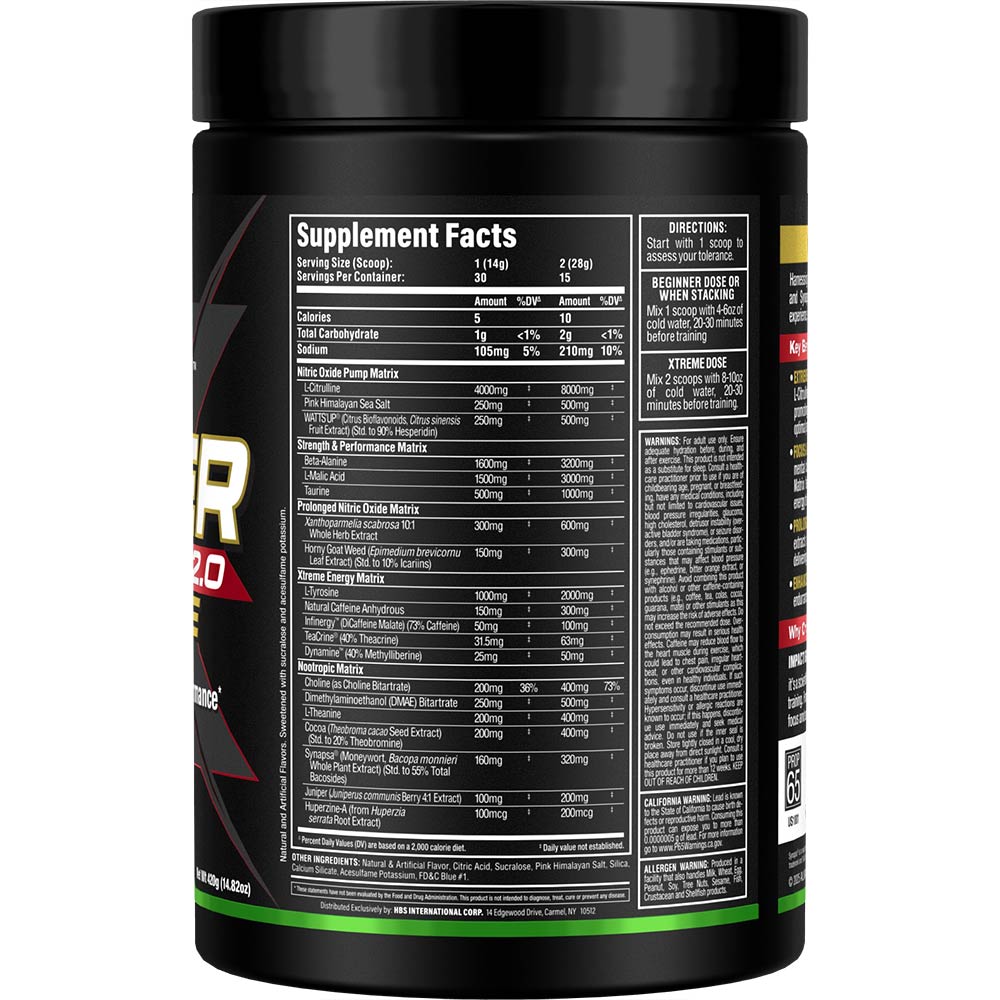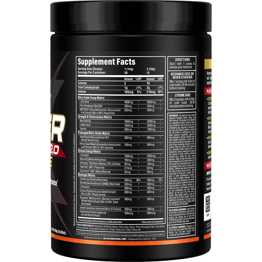 Xtreme Dose: 2 scoops with 8–10 oz (240–300 mL) water 20–30 minutes before training.